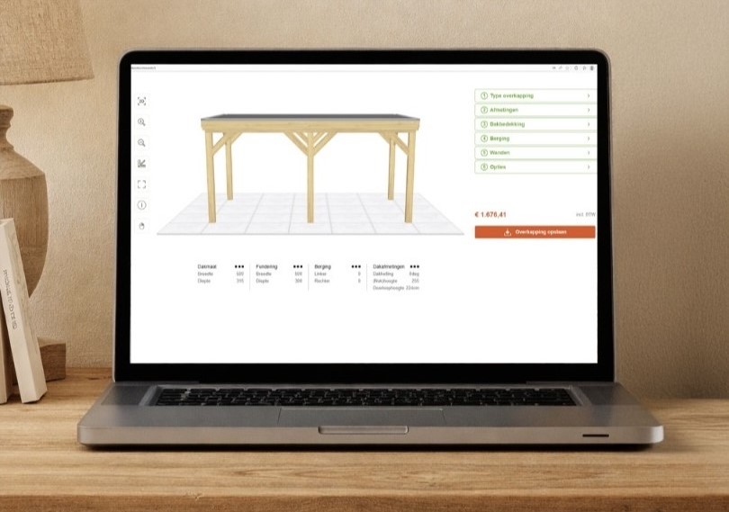 Wil je alvast thuis aan de slag met jouw ideale buitenverblijf? Met de nieuwe 3D-configurator ontwerp je eenvoudig zelf je nieuwe buitenruimte, gewoon vanuit huis. Of je nu op de bank zit met je mobiel of achter je laptop kruipt: je ontwerpt je nieuwe buitenverblijf waar en wanneer het jou uitkomt. Je ziet direct hoe jouw ontwerp eruit komt te zien en wat de mogelijkheden zijn.
