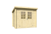 De Indi Blokhut 250x195 cm is een compacte en praktische berging van massief vurenhout met een klassiek zadeldak. Deze blokhut is ideaal voor het opbergen van tuingereedschap, kussens of kleine tuinmeubelen.
