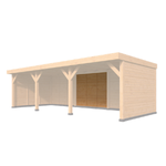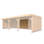 Het platte dak, met een dakbeschot van 1,8 x 19 cm, geeft een moderne uitstraling en biedt stevige bescherming.