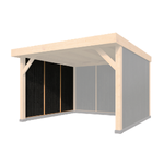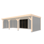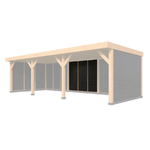 Deze doe-het-zelf overkapping wordt geleverd met alle benodigde bevestigingsmaterialen en een bouwtekening, waardoor het eenvoudig is om zelf te monteren en op maat te zagen. Het materiaal is van hoogwaardig hout, met een ringbalk van 15 x 15 cm, sporen van 6,3 x 17,5 cm en staanders van 15x15 cm. De modulaire structuur zorgt voor flexibiliteit in het ontwerp en de installatie.