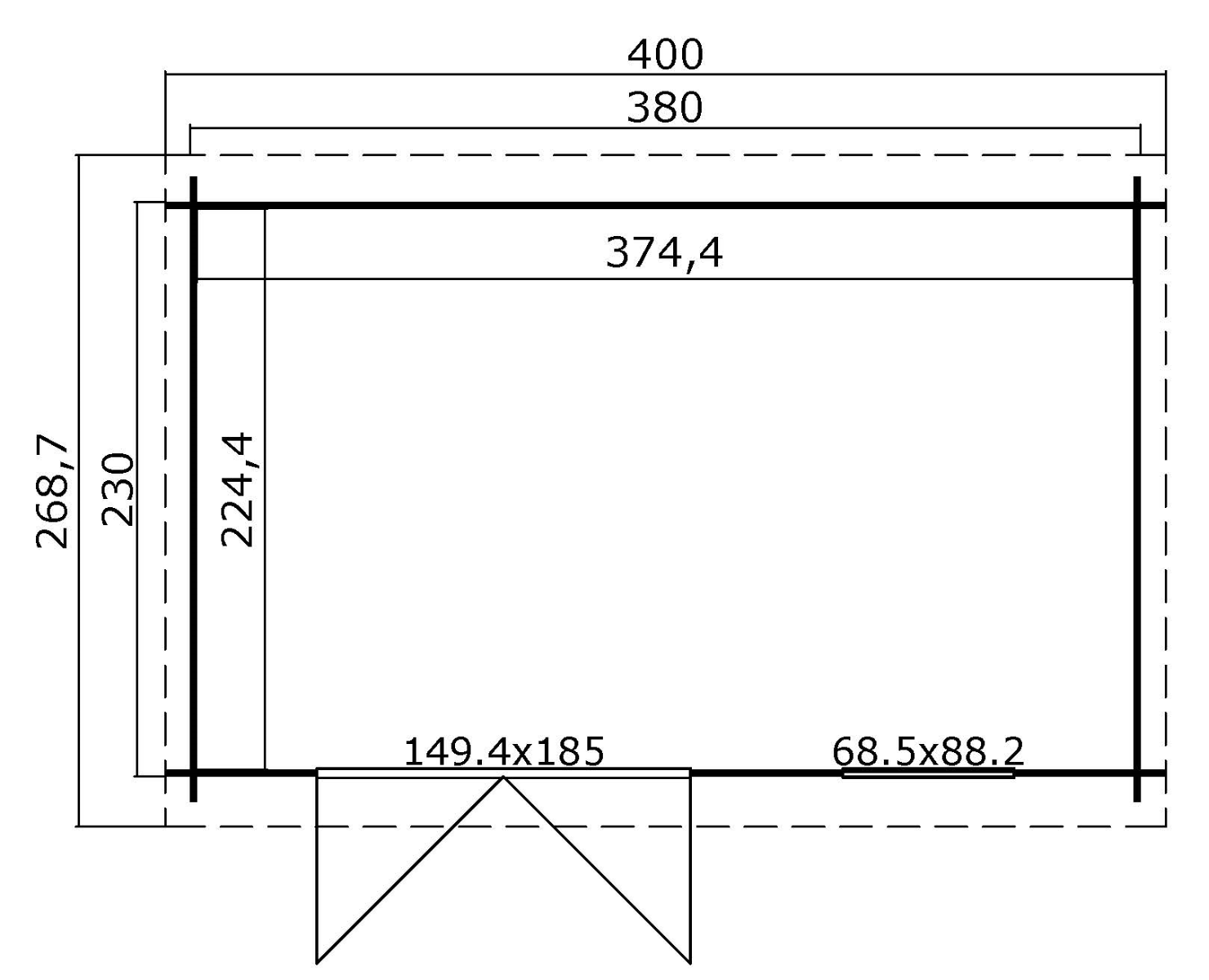 | Funderingsmaat | 380x230 cm |