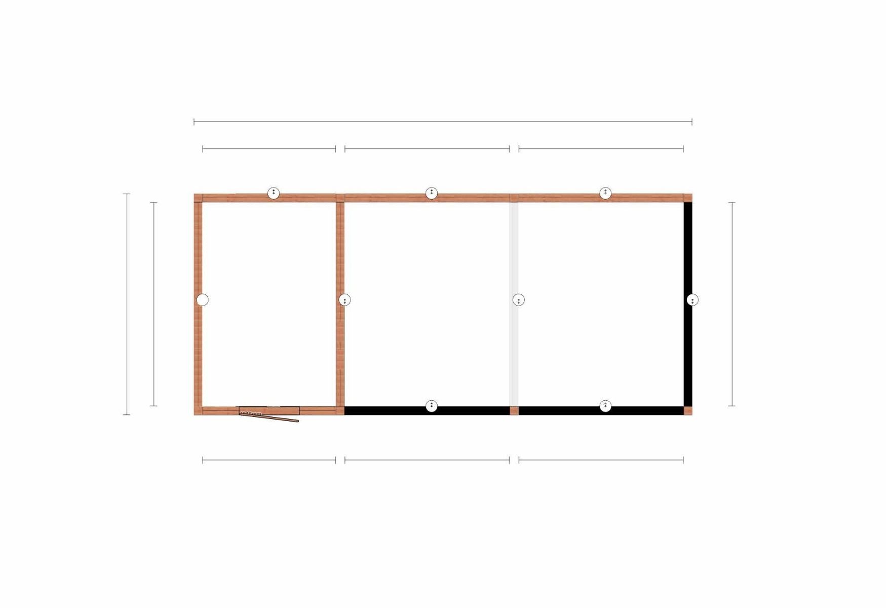- Dakconstructie: gordingen 65x145 mm met rondom overstek 65x145 mm