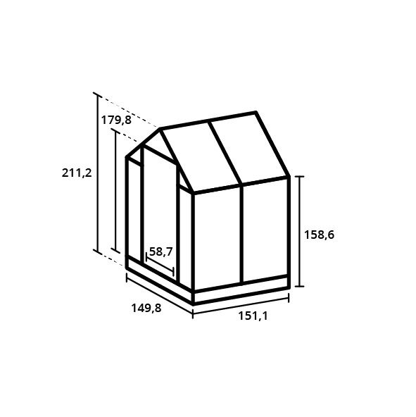 De aluminium kas is voorzien van een dubbele schuifdeur en heeft een oppervlakte van circa 2,3 m². Met een nokhoogte van ruim 2,11 meter beschikt u over een comfortabele werkhoogte, waardoor werken in de kas prettig en toegankelijk blijft. Tuinkas Anne I is uitgevoerd in de kleur groengrijs RAL 7009 en wordt compleet geleverd met 3 mm veiligheidsglas en een bijpassende fundering.