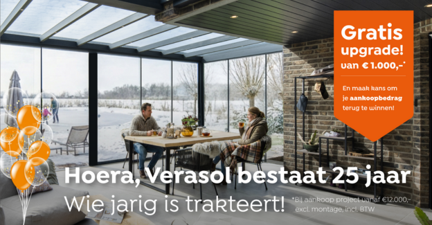 Tijdelijk extra veel korting op onder meer Verasol veranda's! Bestel nu en geniet van deze prachtige uitbreiding op uw leefruimte. Plaats uw bestelling online of kom langs in onze showrooms!