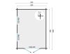 Dit tuinhuis is uitgevoerd met een enkele deur aan de voorzijde, voorzien van gehard isolatieglas in 4-16-4 mm uitvoering. De deur is rechts scharnierend en uitgerust met een cilinderslot voor extra veiligheid. Daarnaast beschikt de blokhut over twee te openen ramen, wat zorgt voor voldoende lichtinval en ventilatie in de ruimte.