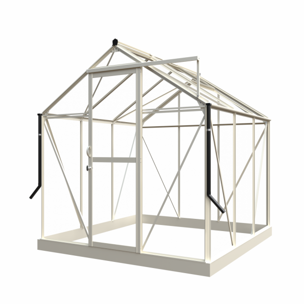 Met de extra hoge zijkanten (goothoogte) geniet je van meer bewegingsruimte en een prettig werkklimaat. Bovendien is de kas afsluitbaar, zodat je planten en gereedschap veilig opgeborgen zijn. Het glas wordt bevestigd met stijlvolle en bijpassende beglazingsstrips, wat niet alleen de montage vergemakkelijkt, maar ook een strakke afwerking garandeert.